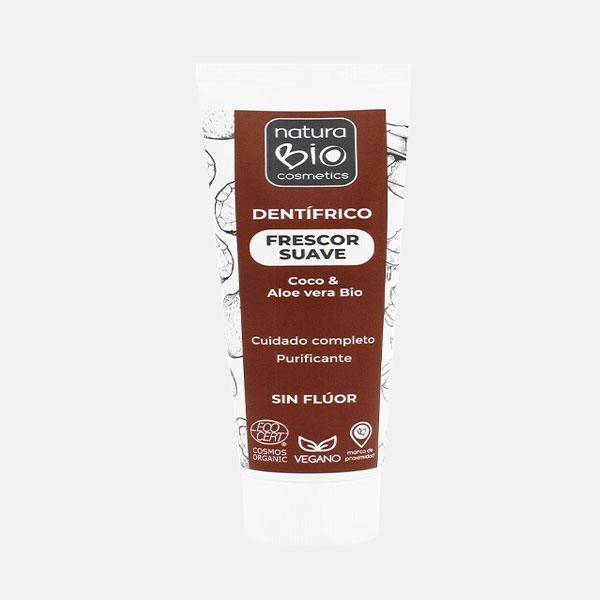 aloé vera e óleo de coco Bio para dentes protegidos. Suave sabor e doce de coco