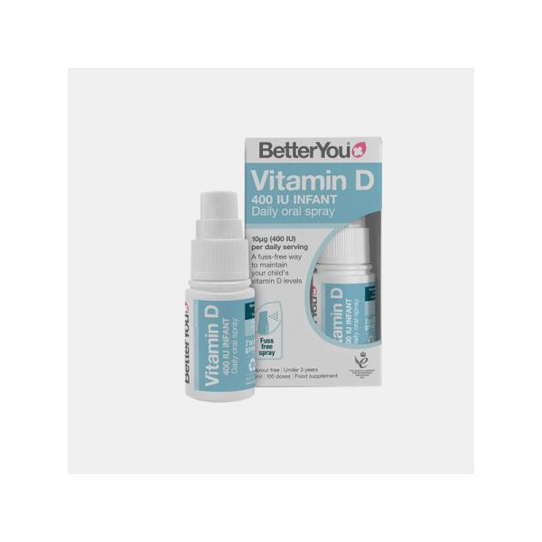 o D400 Infant fornece a dose recomendada de vitamina D (400UI) em uma formulação