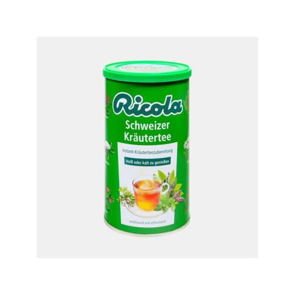 O Chá de Ervas Suíço Instantâneo Ricola tem um bom sabor quente ou frio. A