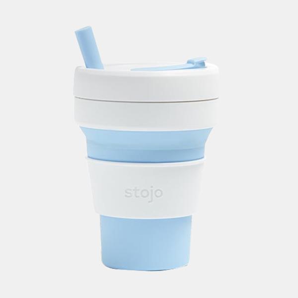 um copo reutilizável, dobrável e ultra-prático, ideal para levar cafés, sumos,