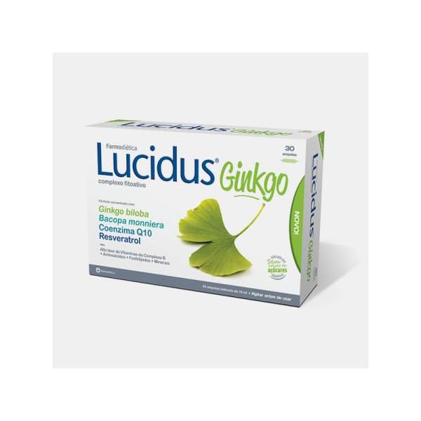 Lucidus®Ginkgo é um suplemento alimentar que contém vários ingredientes ativos, entre os quais plantas de uso tradicional tais como a Ginkgo biloba e Bacopa monniera, resveratrol, Coenzima Q10, Fosfolípidos, Aminoácidos, Minerais, e um alto teor de vitaminas do complexo B.